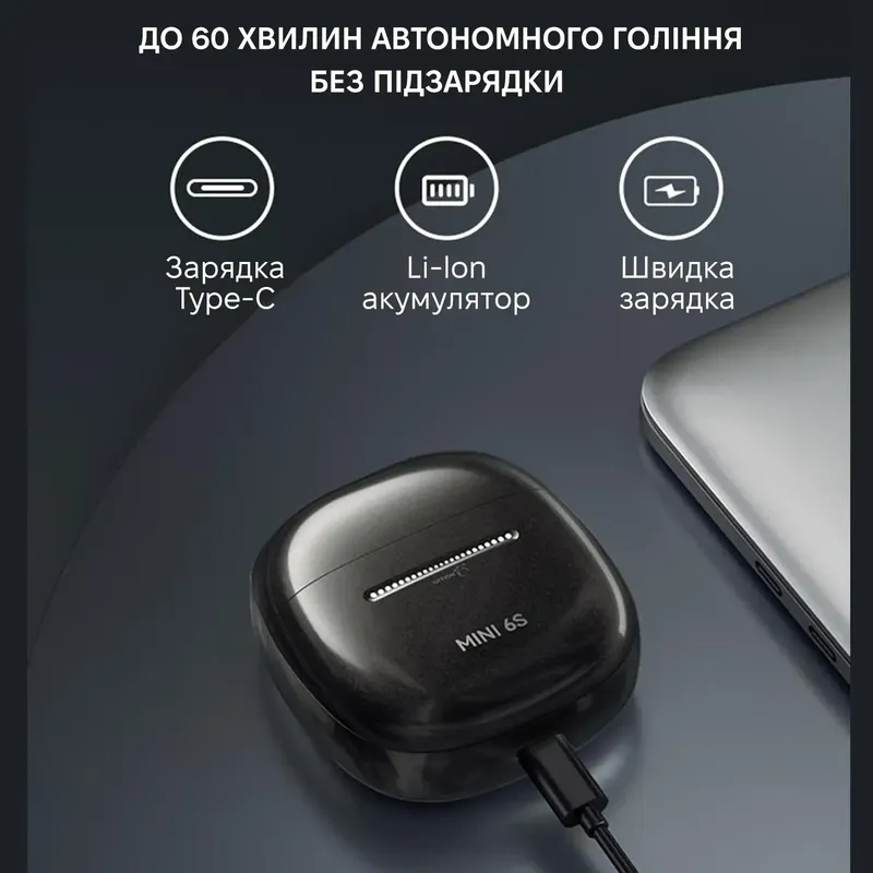 Тип зарядки: USB Type-C, зручний та швидкий спосіб підзарядки