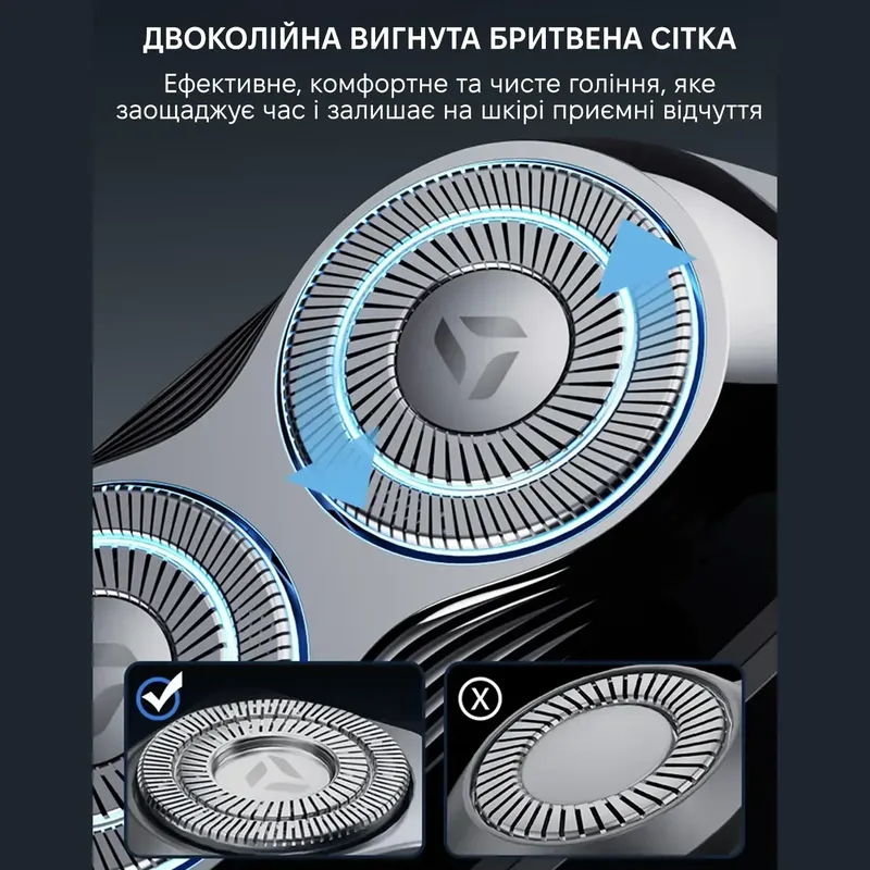 Система лез: Два незалежні роторні ножі для гладкого гоління