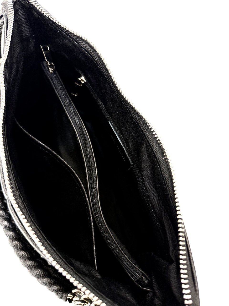 3.Всередині два відділи, які мають внутрішні маленькі кишені на бічних стінках, перегородка між ними є ще однією кишенею. На задній панелі сумки розміщена кишеня на змійці, а на передній дві відкриті.