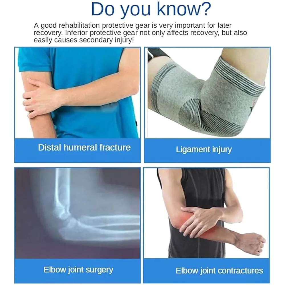 Ортез для ліктя: Цей ортез з м’якою підкладкою ніжно обхоплює верхню частину вашої руки, залишаючись достатньо компактним, щоб забезпечити вільний та комфортний рух плечем і ліктем без болю.